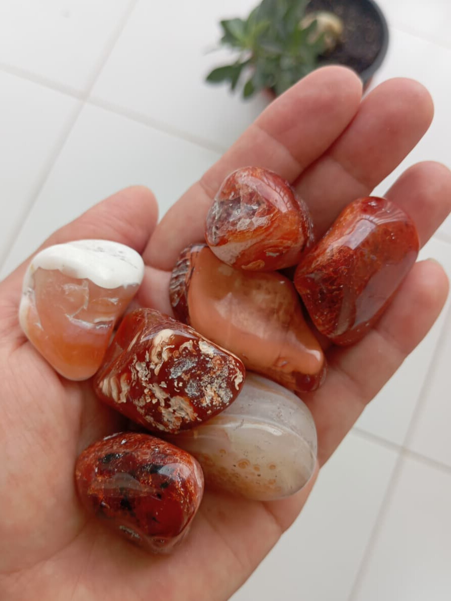 A Cornalina é uma pedra vibrante, ligada à energia vital, criatividade e entusiasmo. Atua no chakra sacral, ajudando a vencer bloqueios, a se expressar com alegria e a despertar a motivação para agir.