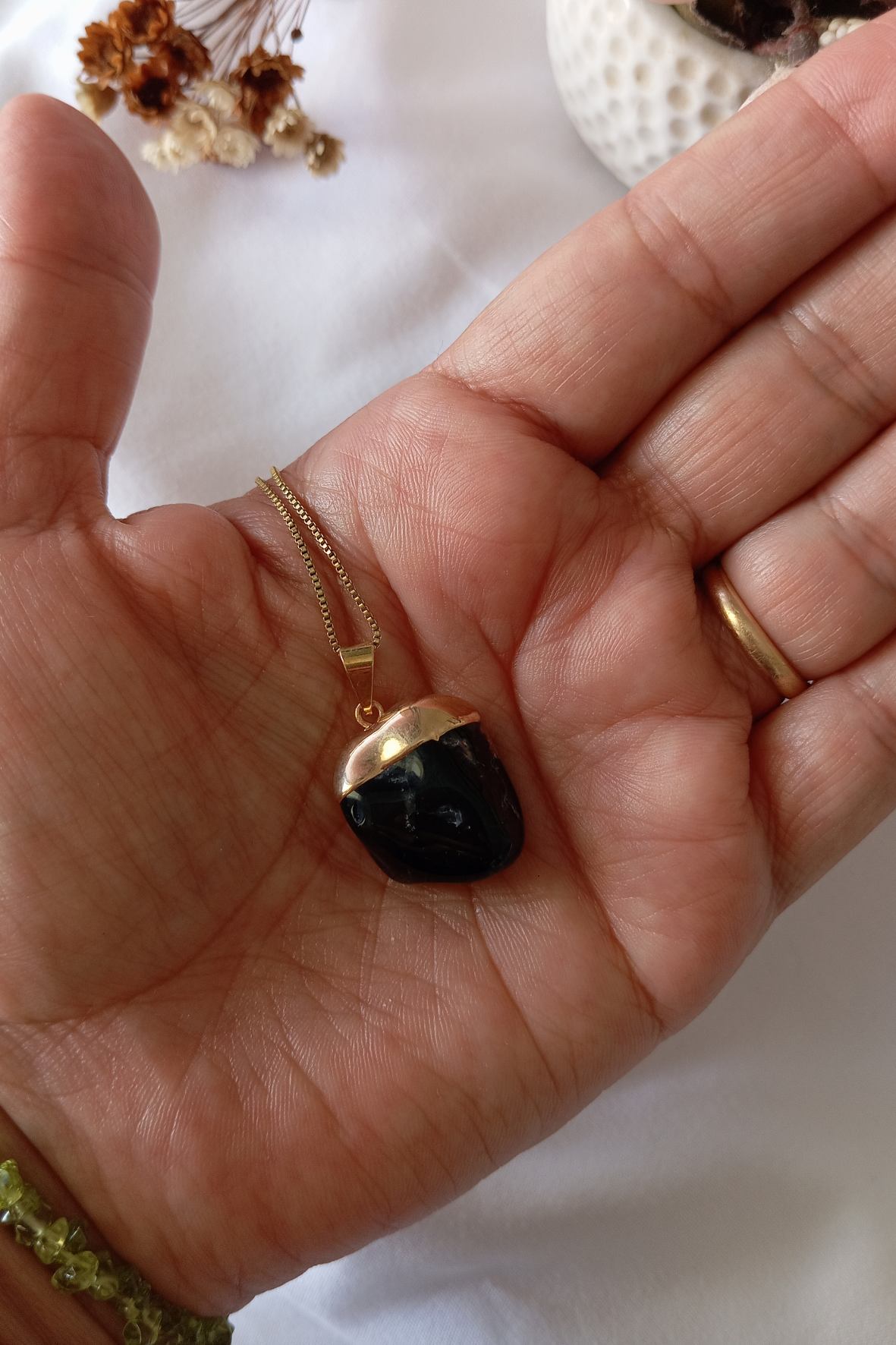 O Ônix é uma pedra poderosa de proteção e enraizamento. Atua no chakra base, bloqueando ataques energéticos e fortalecendo a firmeza emocional diante de desafios.