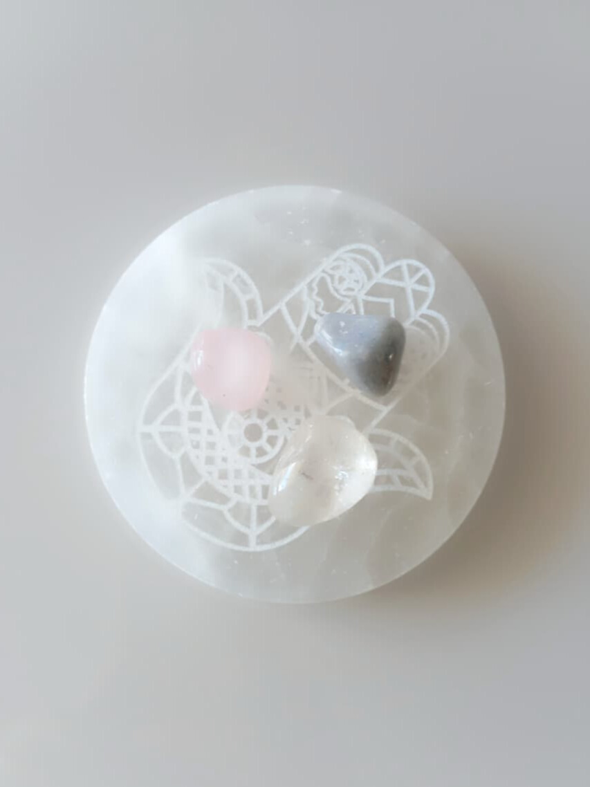 A Placa redonda de Selenita é perfeita para purificação e limpar outros cristais naturalmente. Basta colocá-los sobre a placa por algumas horas. Além disso, ela purifica o ambiente e pode ser usada como base para objetos sagrados ou amuletos.